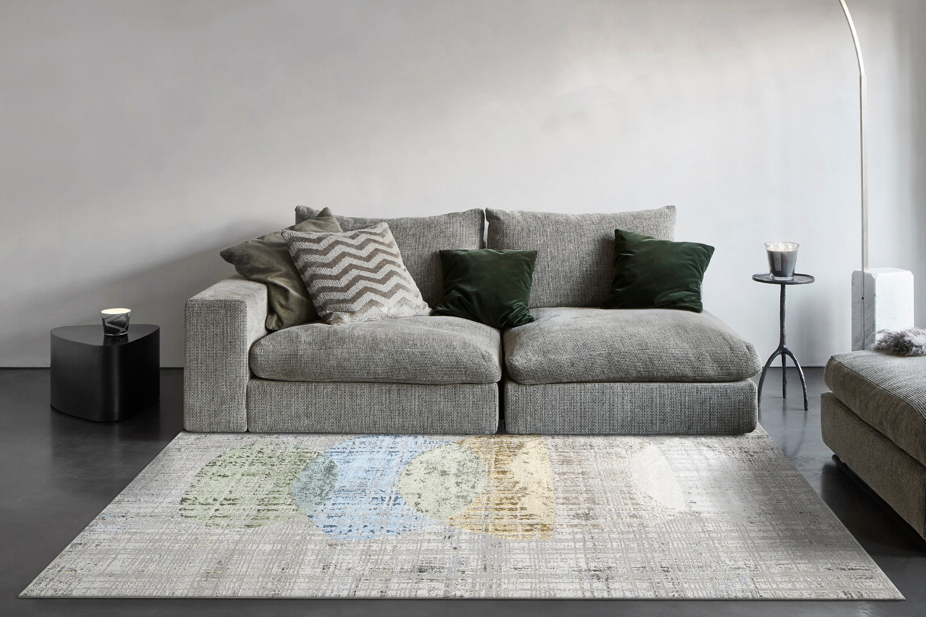 Reminiscent of framed wall art, the mid-century modern, asymmetrical geometric designs of Merit are sure to create some lasting gazes. The use of polyester allows for a smooth touch underfoot, yet the point count of these rugs give it a density that shows true value. The contemporary designs of this collection are complemented perfectly with contemporary colors such as gold, olive, and a pewter blue. The patterns of this collection truly make these rugs a statement, yet the construction makes them sustainable and practical.