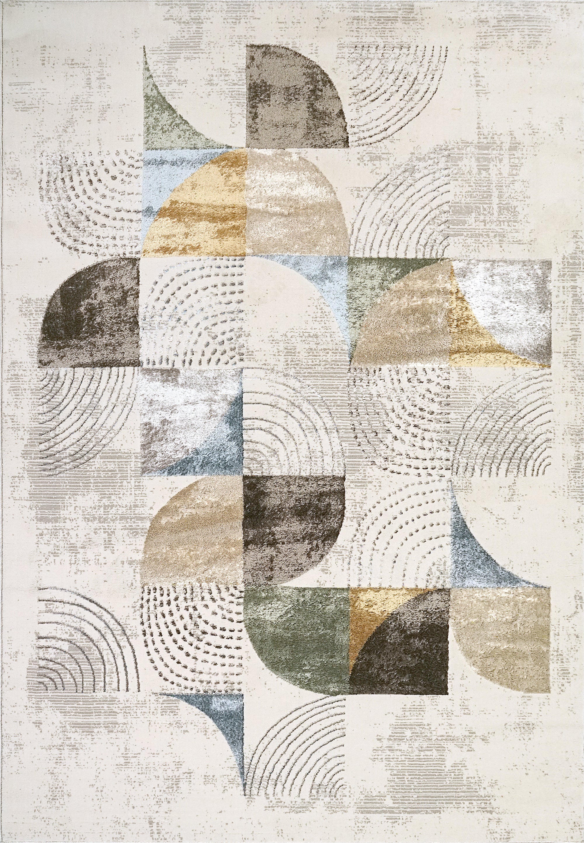 Reminiscent of framed wall art, the mid-century modern, asymmetrical geometric designs of Merit are sure to create some lasting gazes. The use of polyester allows for a smooth touch underfoot, yet the point count of these rugs give it a density that shows true value. The contemporary designs of this collection are complemented perfectly with contemporary colors such as gold, olive, and a pewter blue. The patterns of this collection truly make these rugs a statement, yet the construction makes them sustainable and practical.