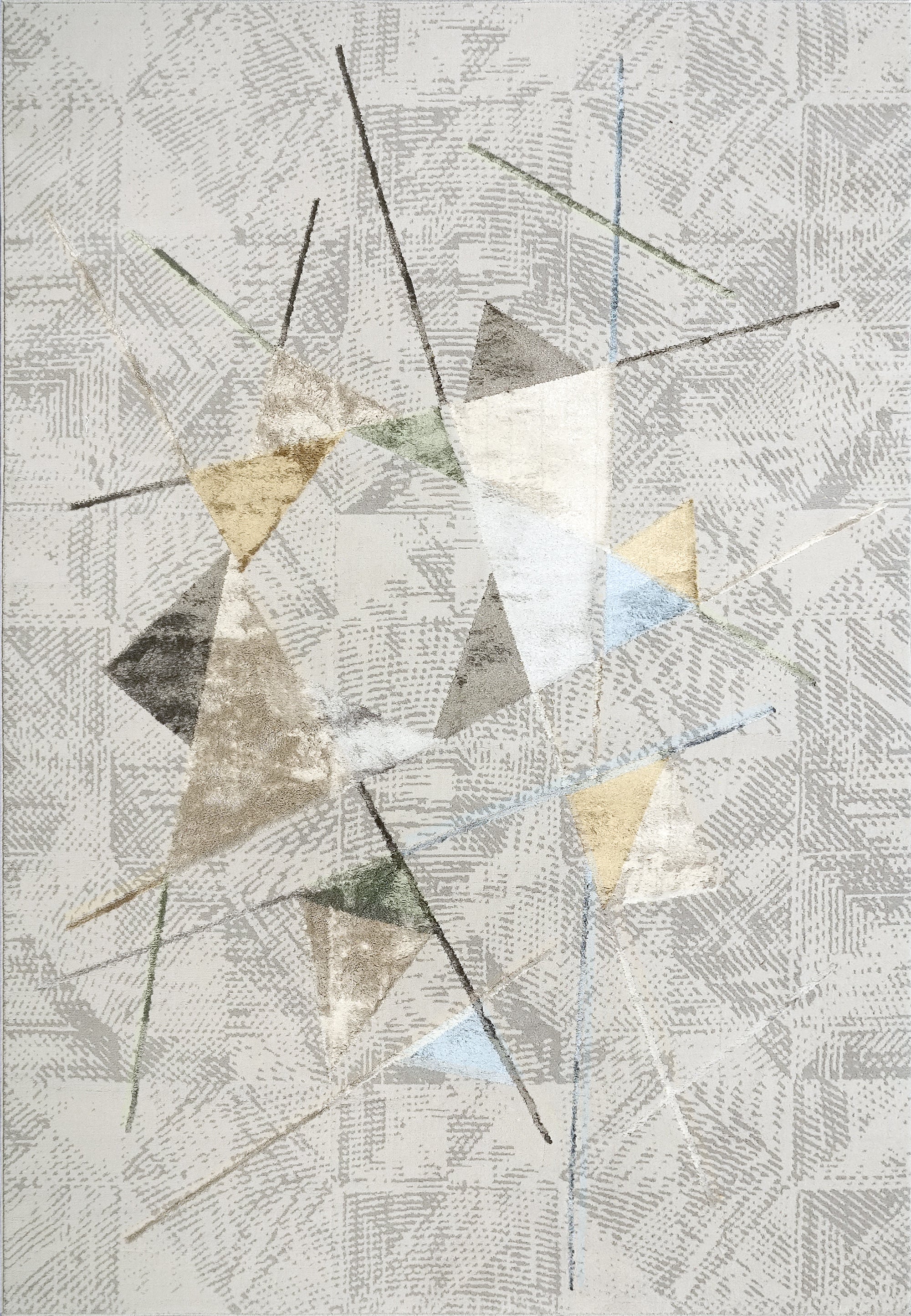 Reminiscent of framed wall art, the mid-century modern, asymmetrical geometric designs of Merit are sure to create some lasting gazes. The use of polyester allows for a smooth touch underfoot, yet the point count of these rugs give it a density that shows true value. The contemporary designs of this collection are complemented perfectly with contemporary colors such as gold, olive, and a pewter blue. The patterns of this collection truly make these rugs a statement, yet the construction makes them sustainable and practical.