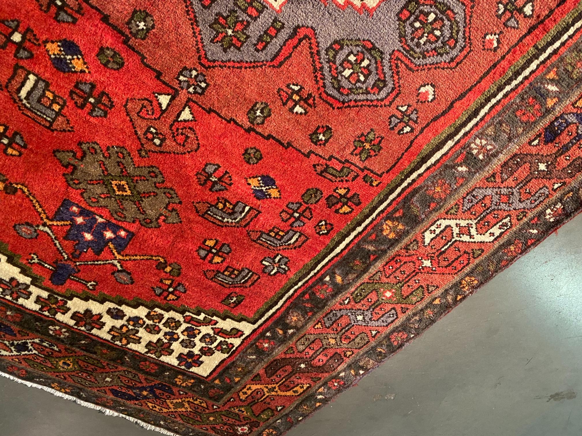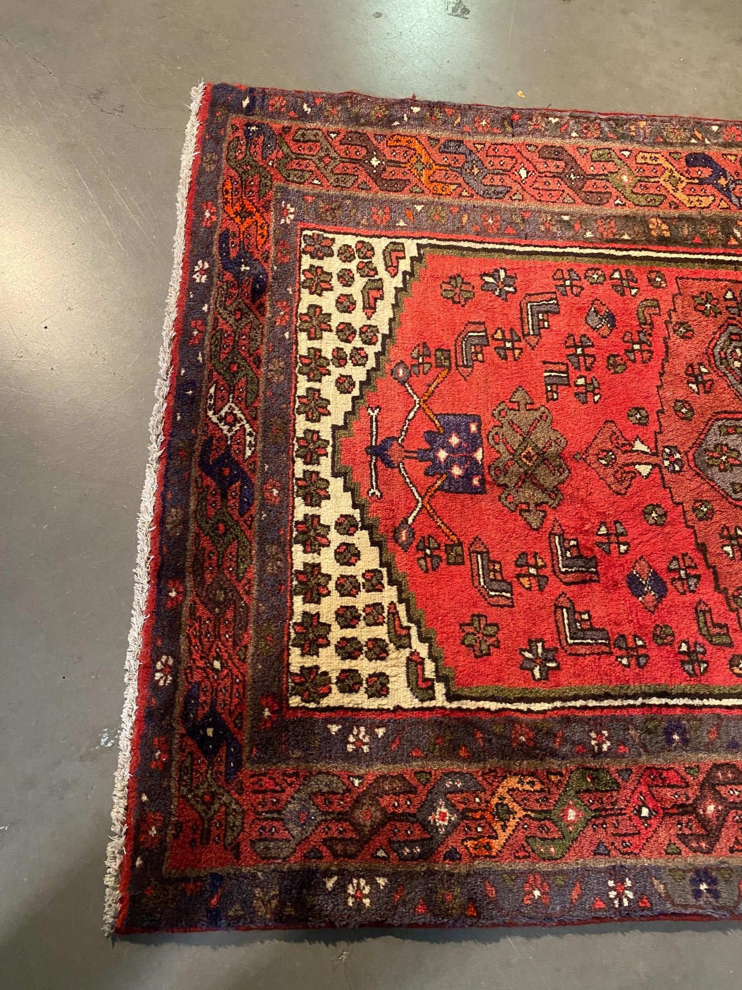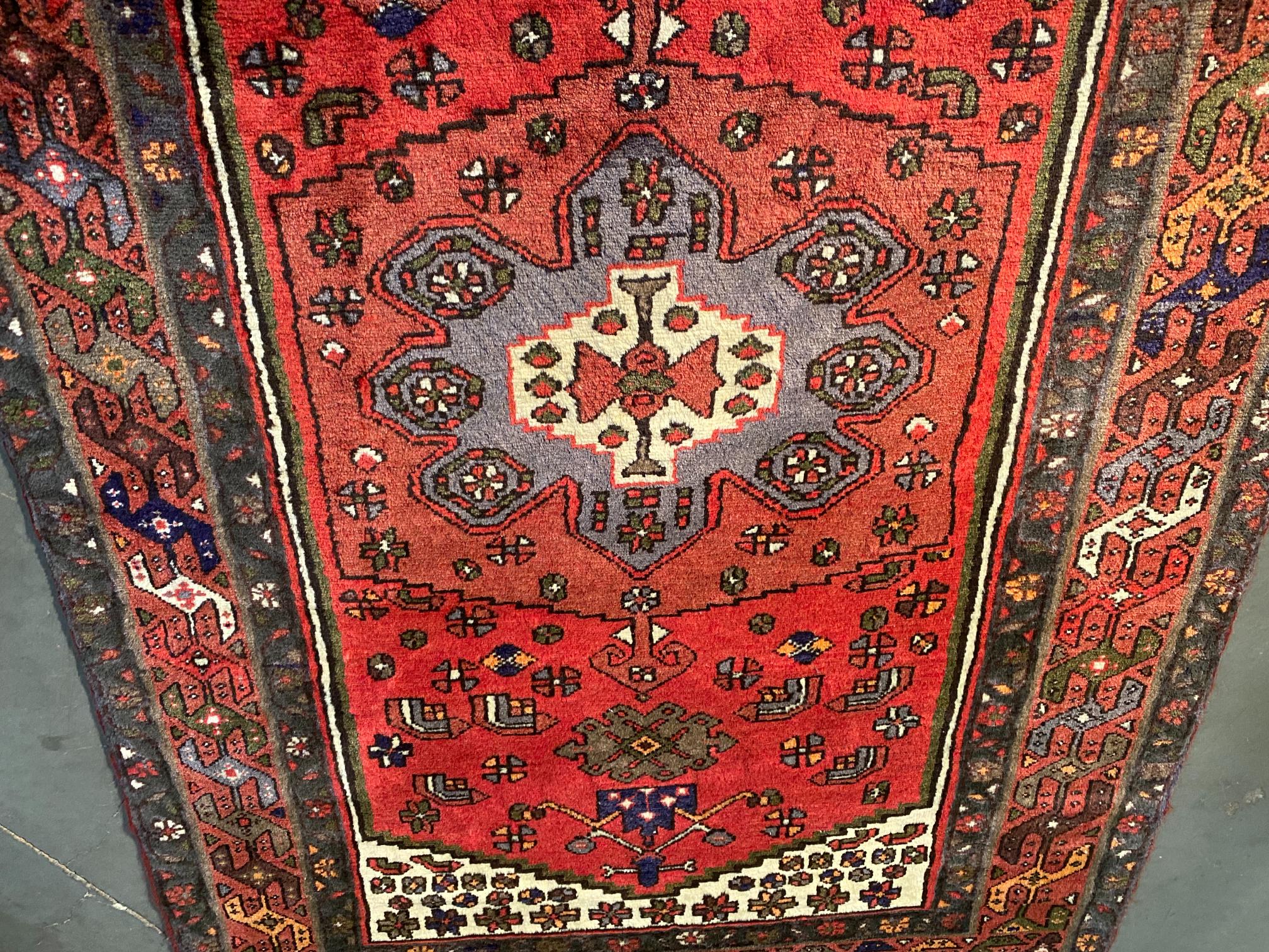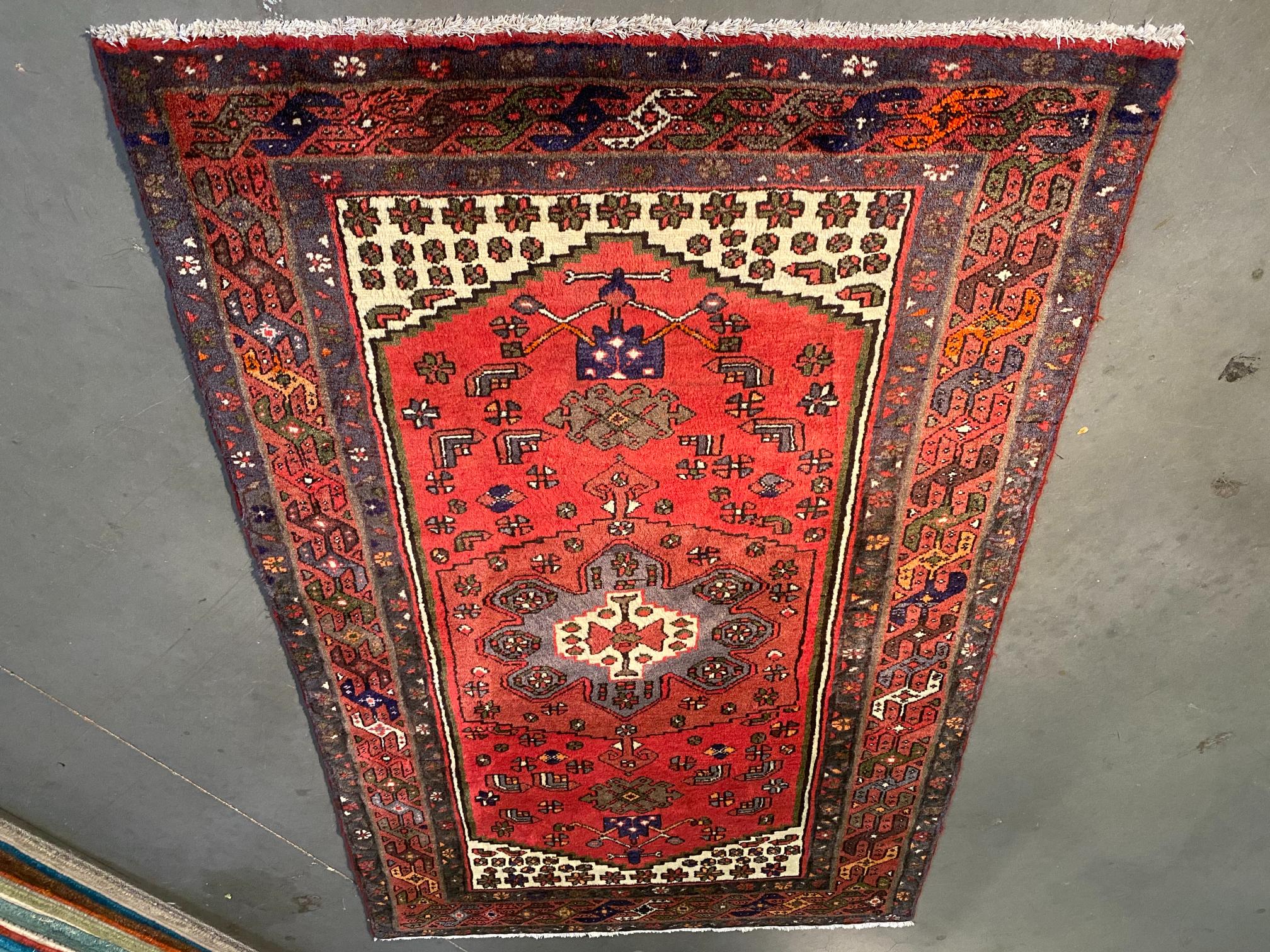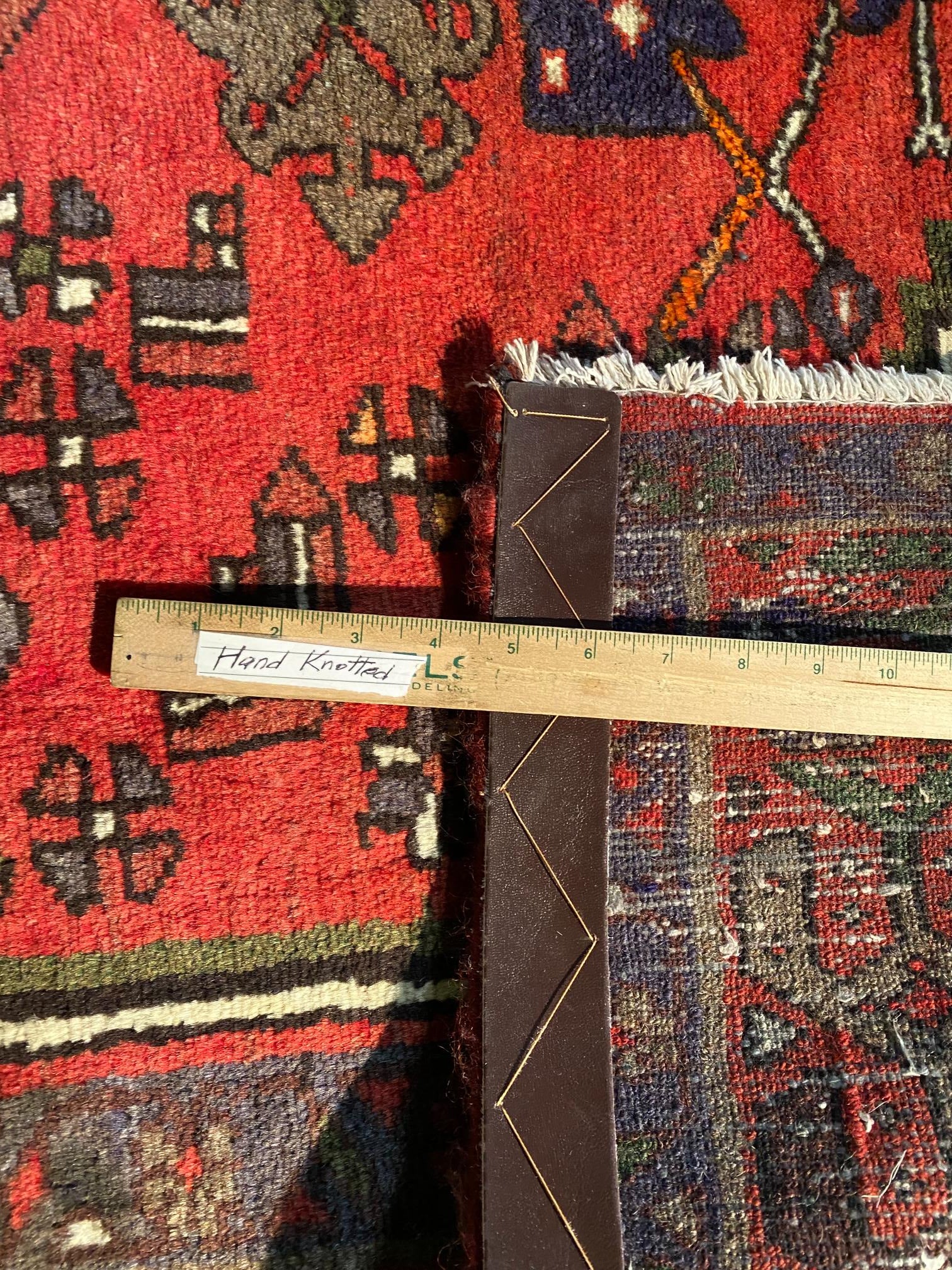 | Beautiful and eye catching Authentic Persian Hamedan rug ,in red , Navy blue and multi accent colors, Vege dye,100% Natural wool pile,Size 4'.1"X 6'.6", Hand Knotted in Iran |