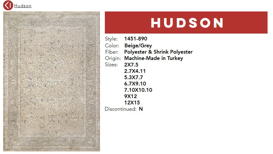 The cross-woven composition and strong materials of Hudson make it a super durable choice, perfect for any high-traffic area. Although the designs are simplified, it still acts as a great neutral, traditional rug for any living space, In Beige and Grey, Hudson is machine-made in Turkey and consists of polyester and shrink polyester for an alluring high-low texture.