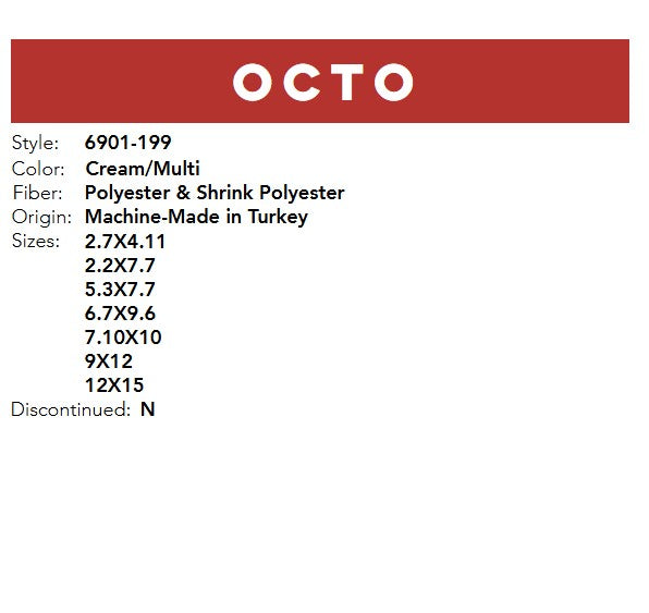 The traditional, timeless styles of Octo coupled with cream and taupe tones make it a perfect choice to add long-lasting warmth to your motif. Machine-made in Turkey of polyester and shrink-polyester, Octo is not only shed-resistant, but durable, In Cream and Multi Color, An ideal choice for high-traffic areas, suited to withstand the test of time.