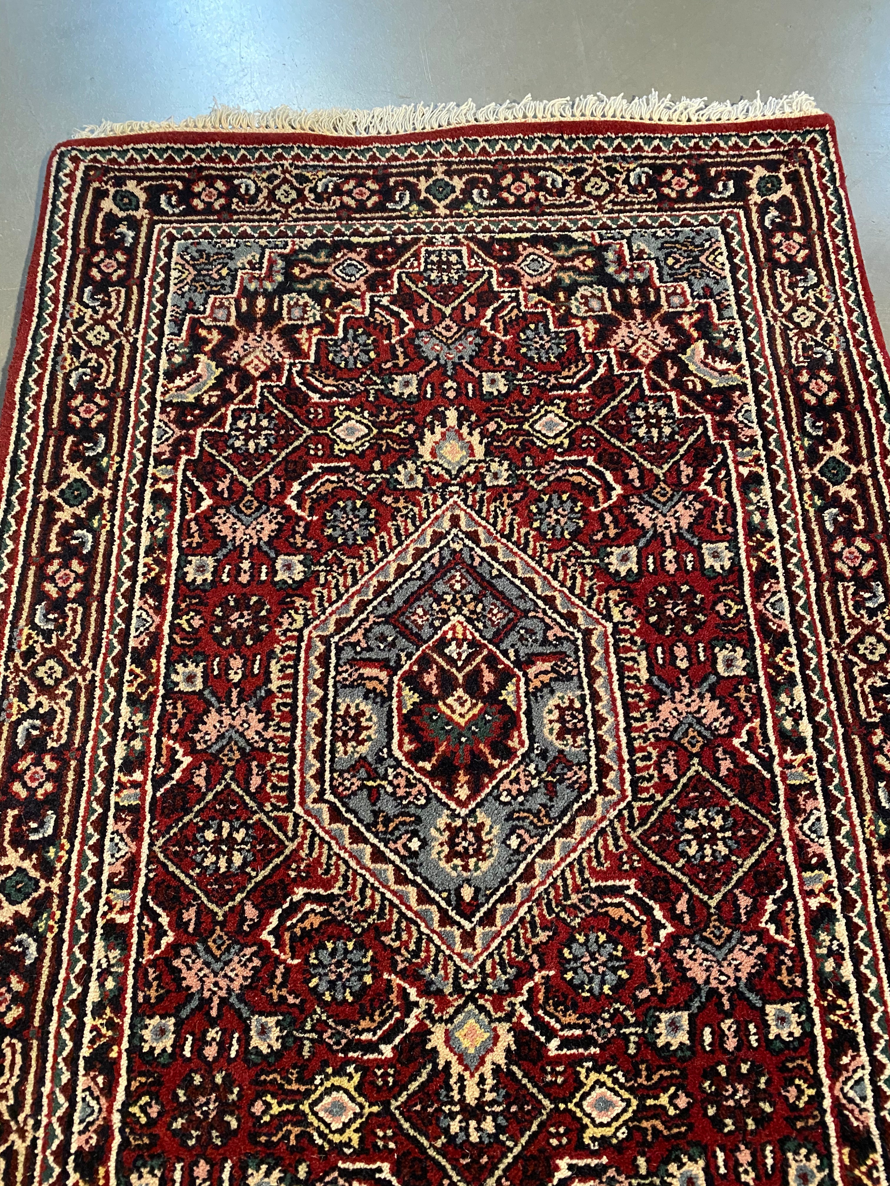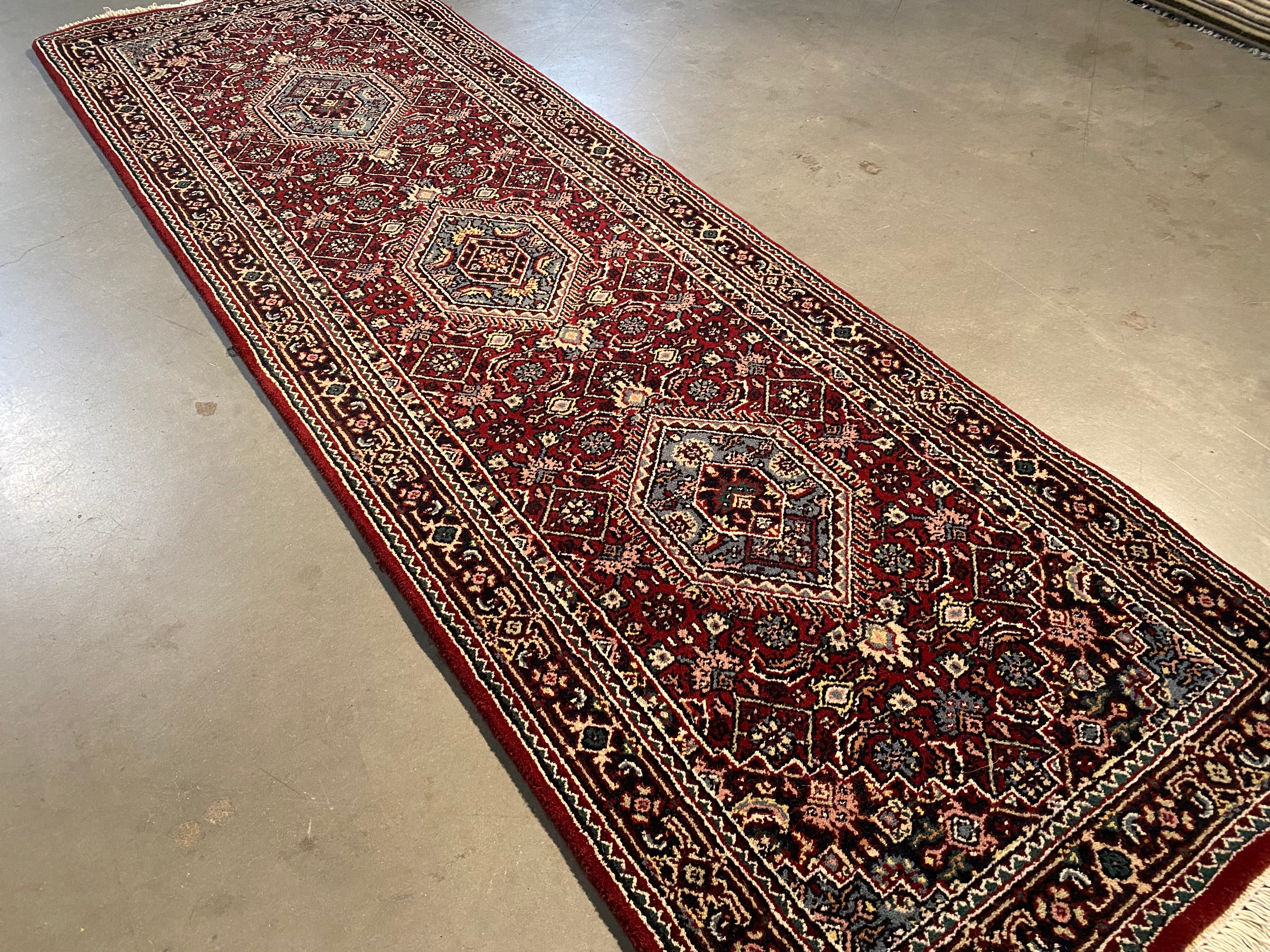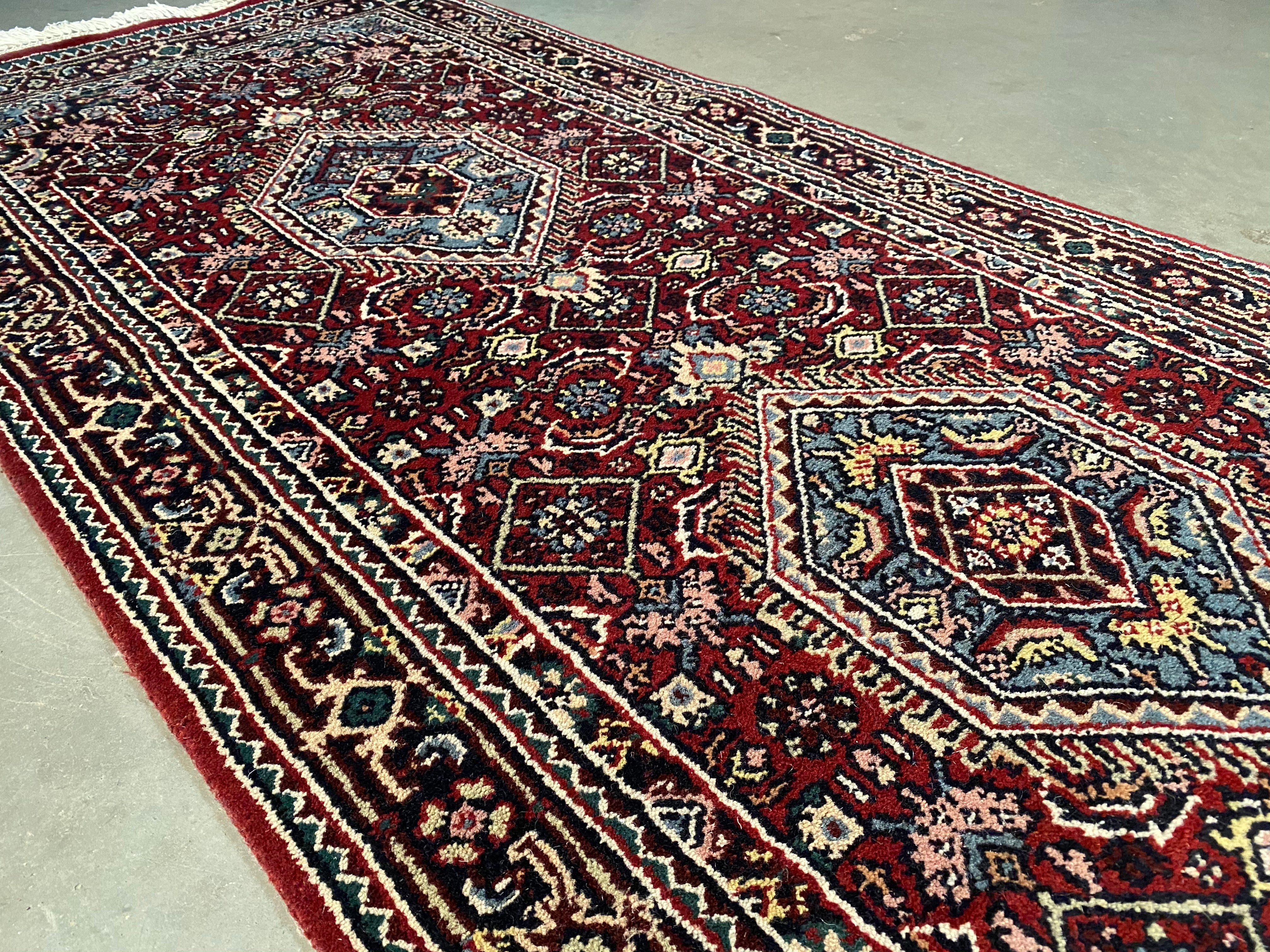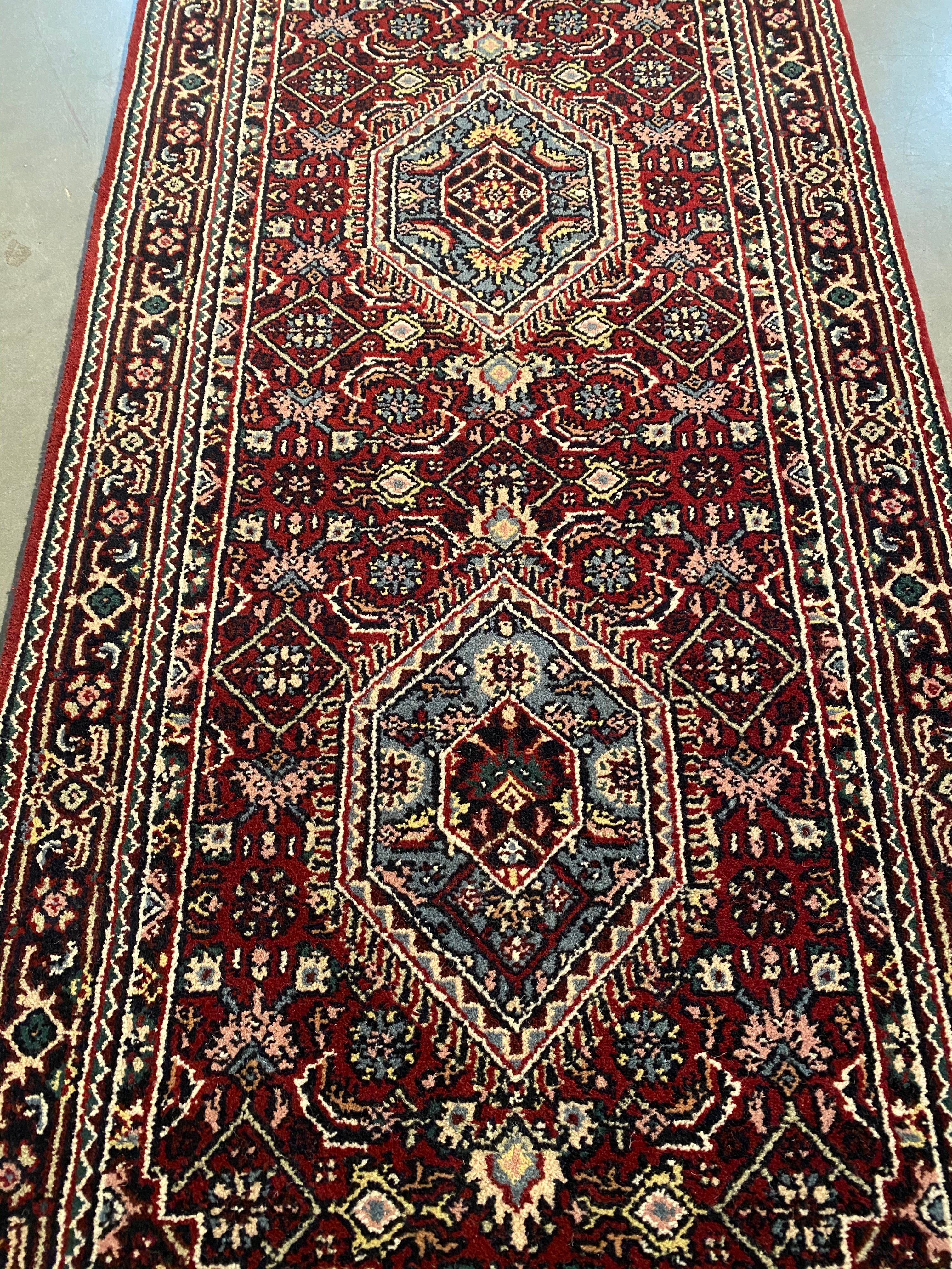 2'.7"X 8'.2" Traditional Persian"Bidjar" design runner made of 100% natural wool and veggie dye Burgandy and multi colors hand-knotted in India.