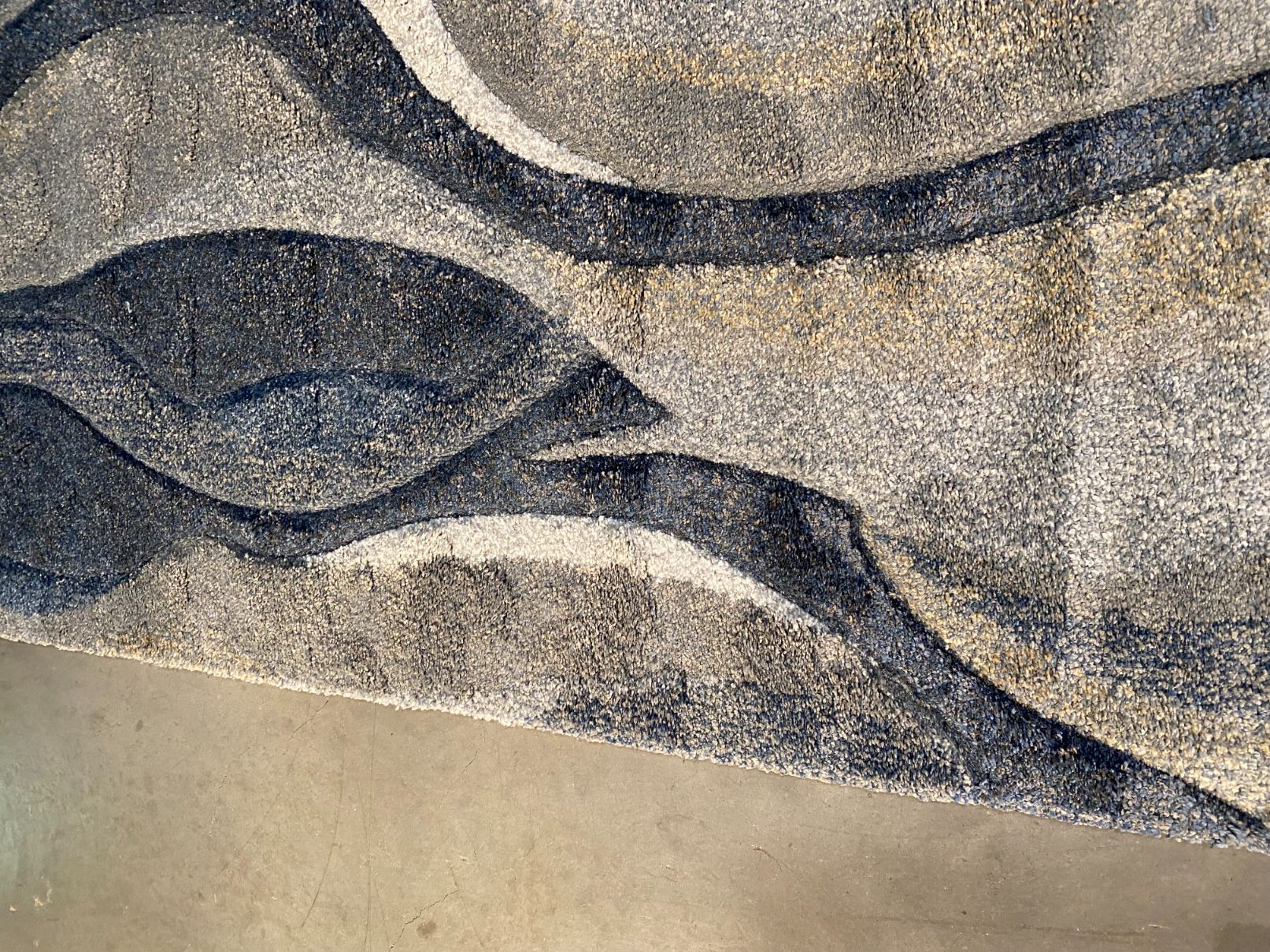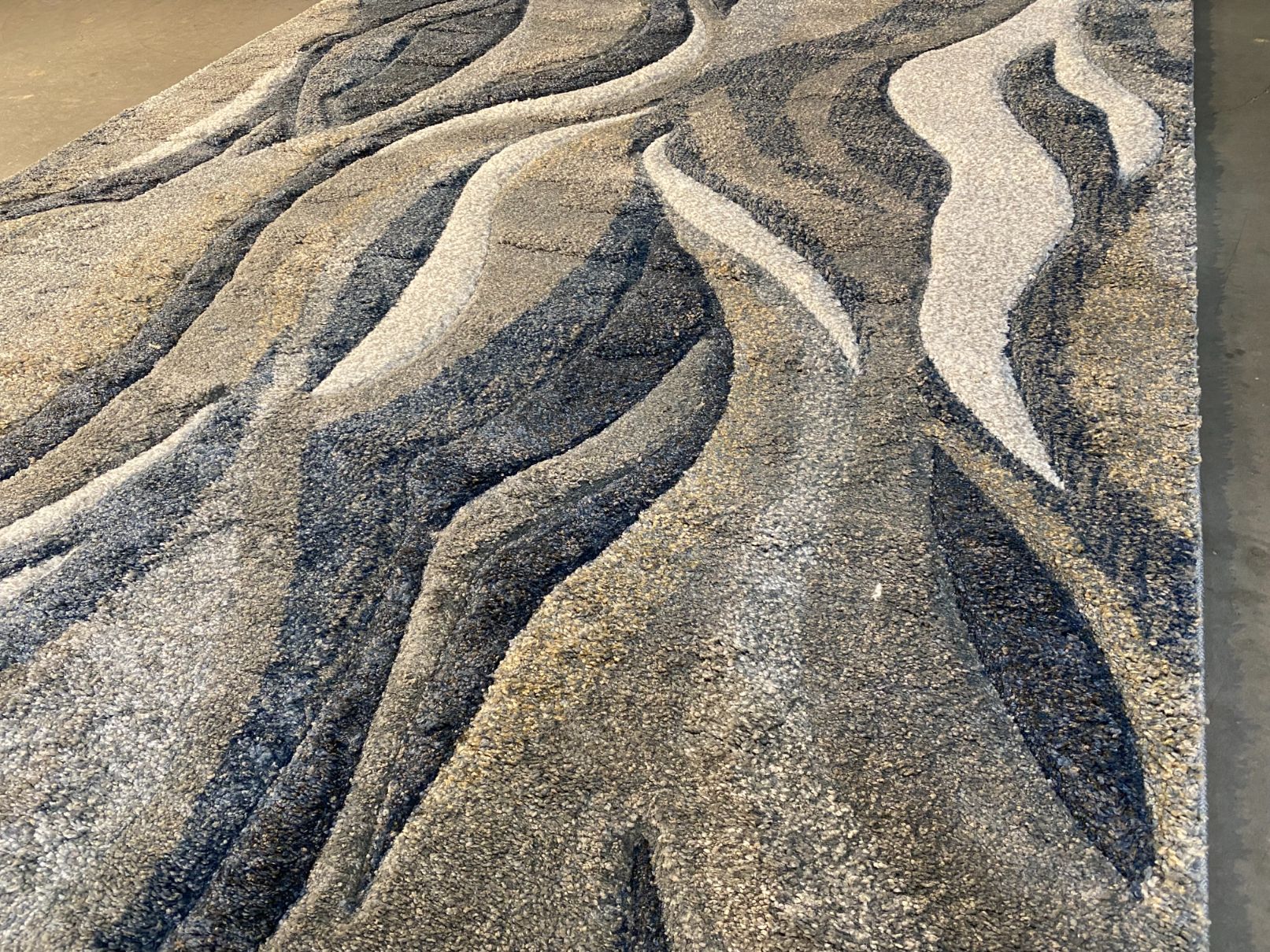 Modern Curved pattern Carved pile in Ivory, blue and multi colors, Made of durable and easy to care, polyproplyen pile power loom in Turkey.
