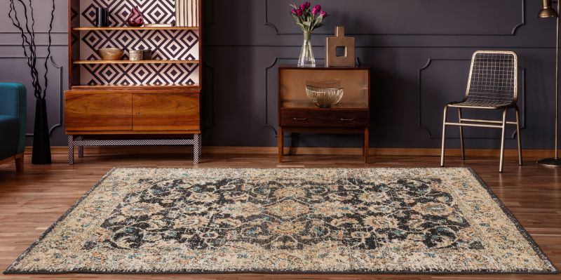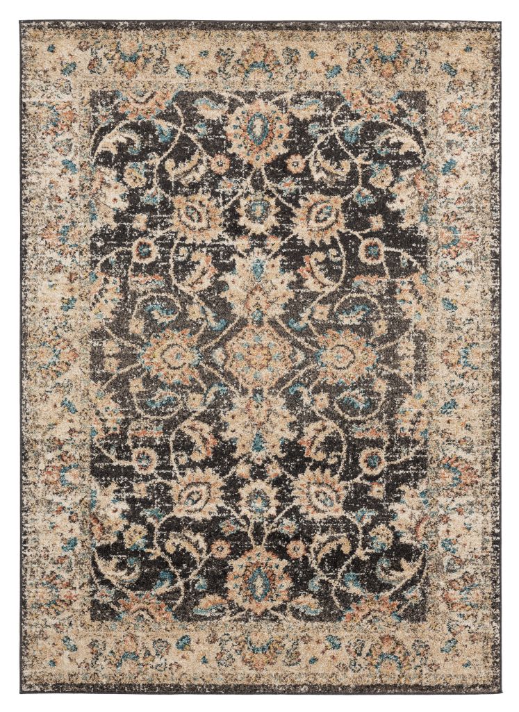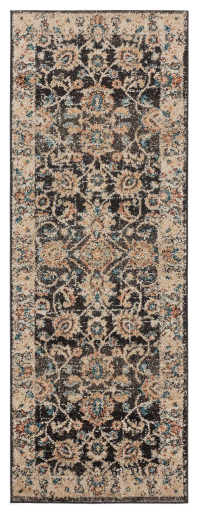 Provide a luxurious appeal to your interior design with this chic transitional rug. This ornate piece creates a beautiful affect by using shades of walnut brown on an onyx backdrop to bring out the intricate detailing in this marvelous design. Machine made in Turkey with polypropylene yarn for stain resistance and lasting durability.