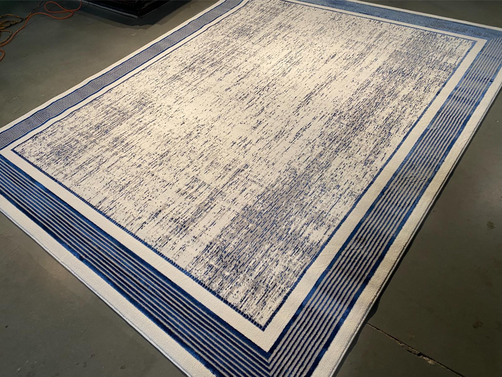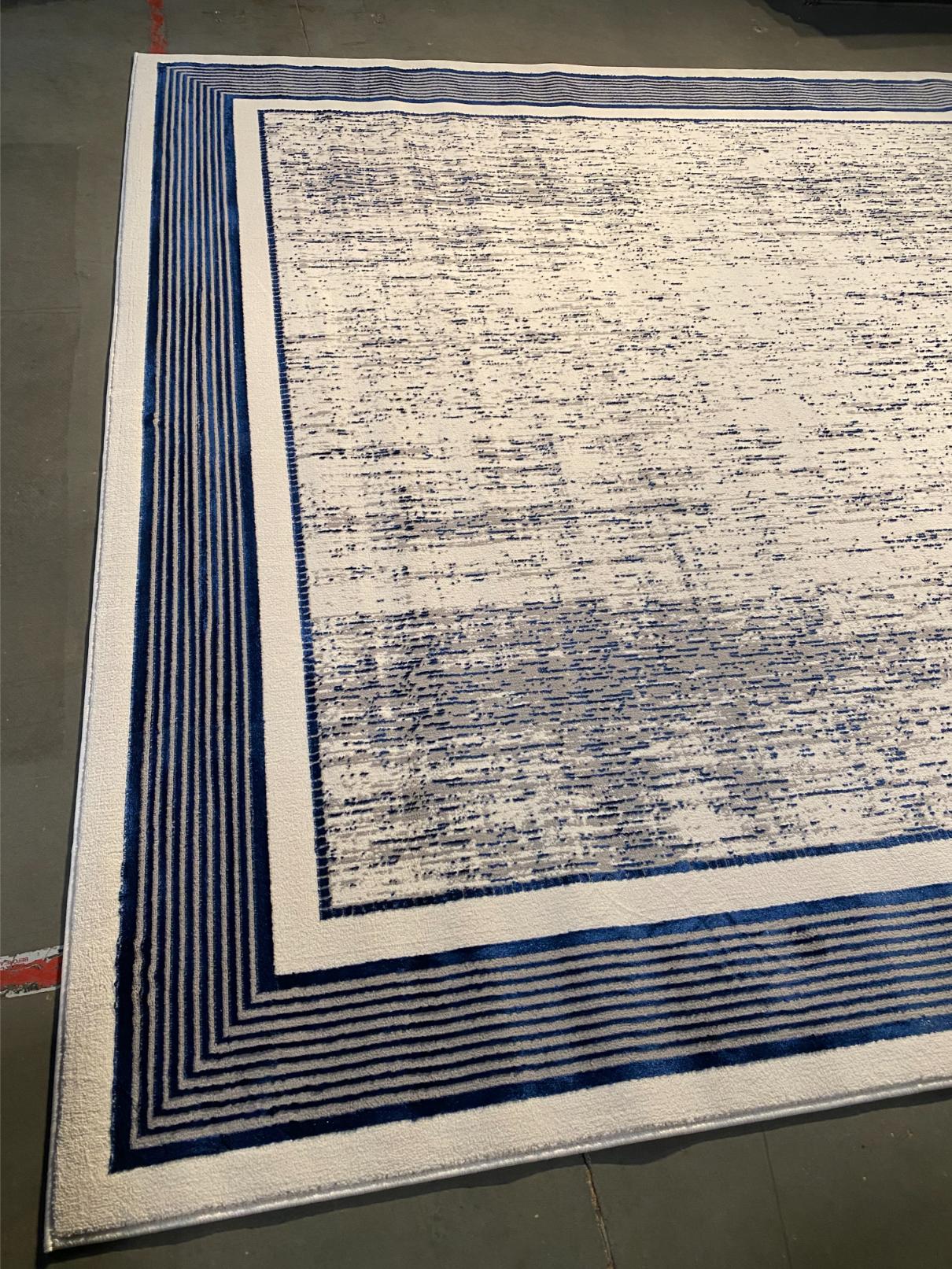 Decorative Modern Texture area rug in contemporary design , in Ivory and blue ,textured machine made in turkey, made of durable and easy care wool like twisted yarn polypropylene pile, colorfast and stain resistant .