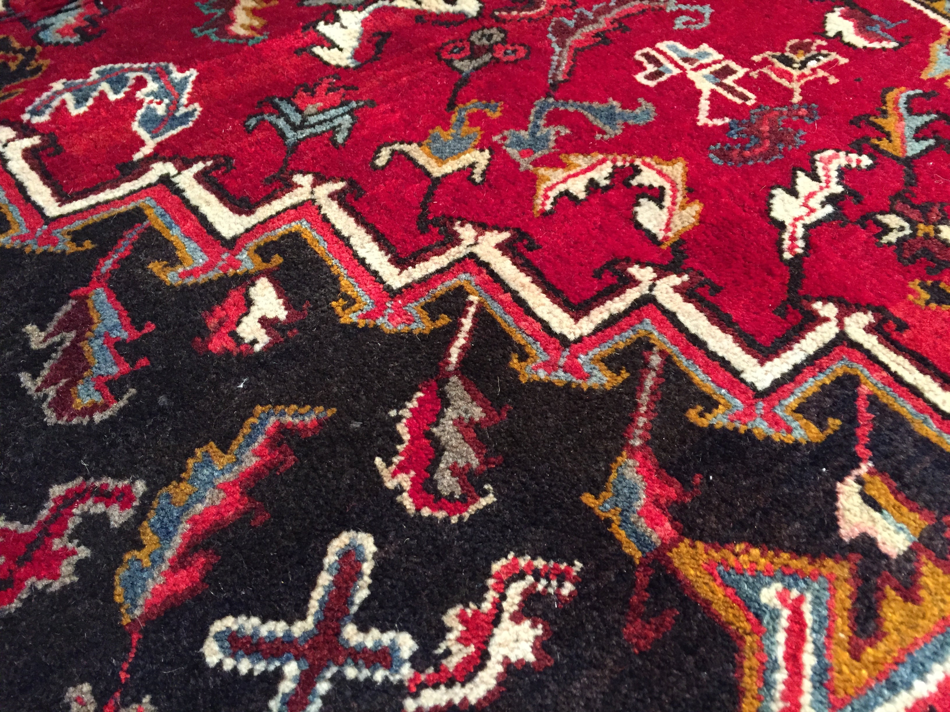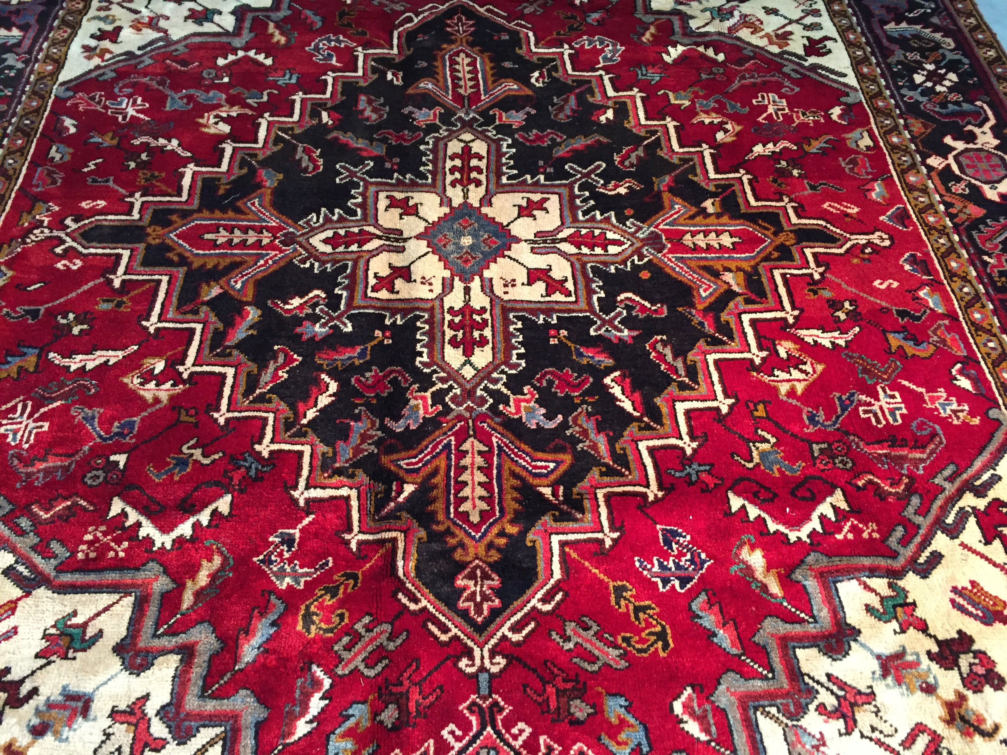 6'.10" X9'.7" Persian Heriz rug 100% Vege Dye Kork wool pile in classic vivid red and differend shade of blue, Ivory and multi accent colors Hand Knotted in Iran.