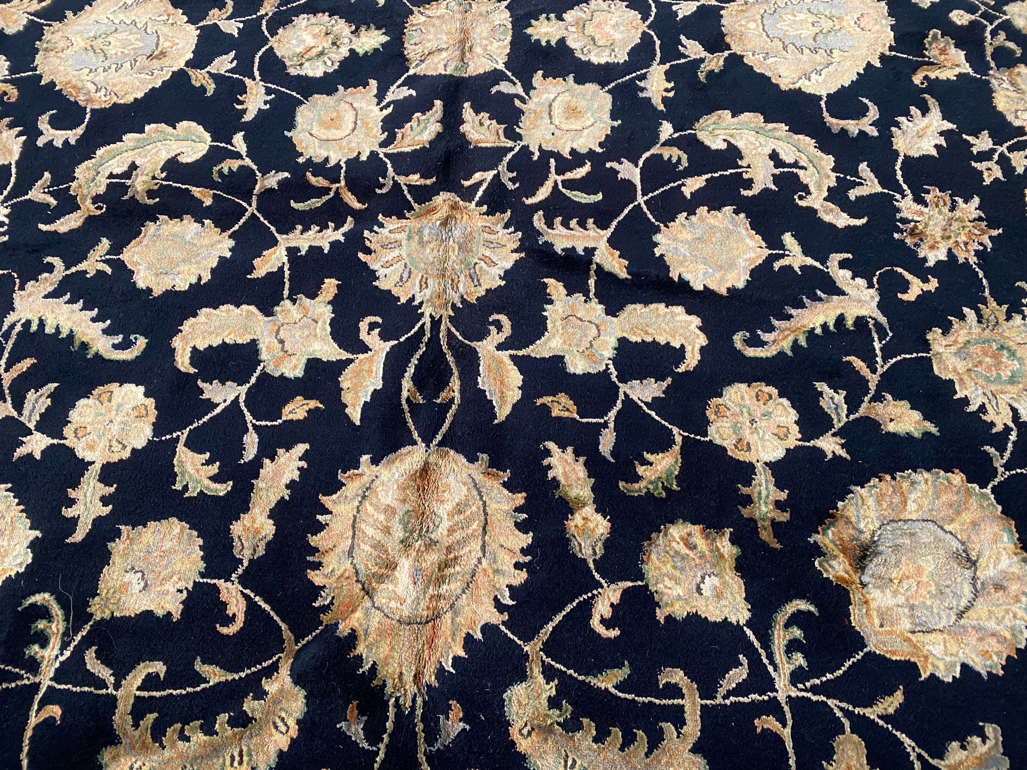 8.9x11.10 Persian allover Mahal design Silk and wool rug 80% wool pile and 20% silk flower highlights sheen pile in Navy Blue , Ivory and multi other accent colors Hand Knotted in India.