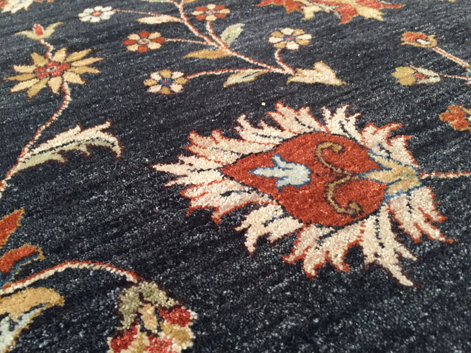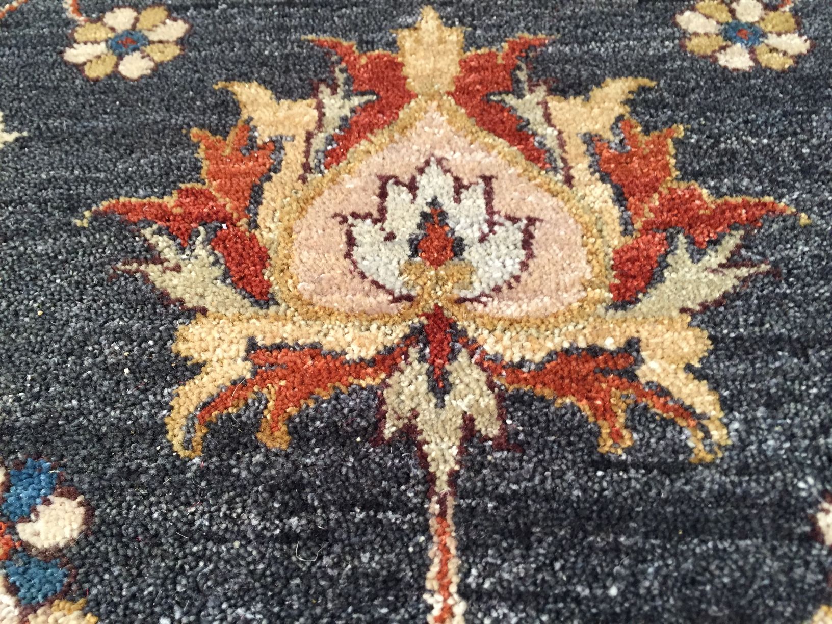 8'X10' classic design Vintage, antique reproduction super Zighler (Peshawar) rug, hand spun and hand knotted rug in Pakistan 100% natural wool pile, in Charcoal grey, rust and multi accent colors.