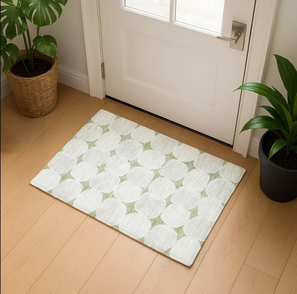 | Delicate geometry and understated colorations rug,Aloe,Functional & Stylish,Ultra-soft microfiber, Machine washable ,Non-skid backing ,Crafted in the USA using a blend of global materials and local labor, it’s perfect for busy homes with pets and kids. |