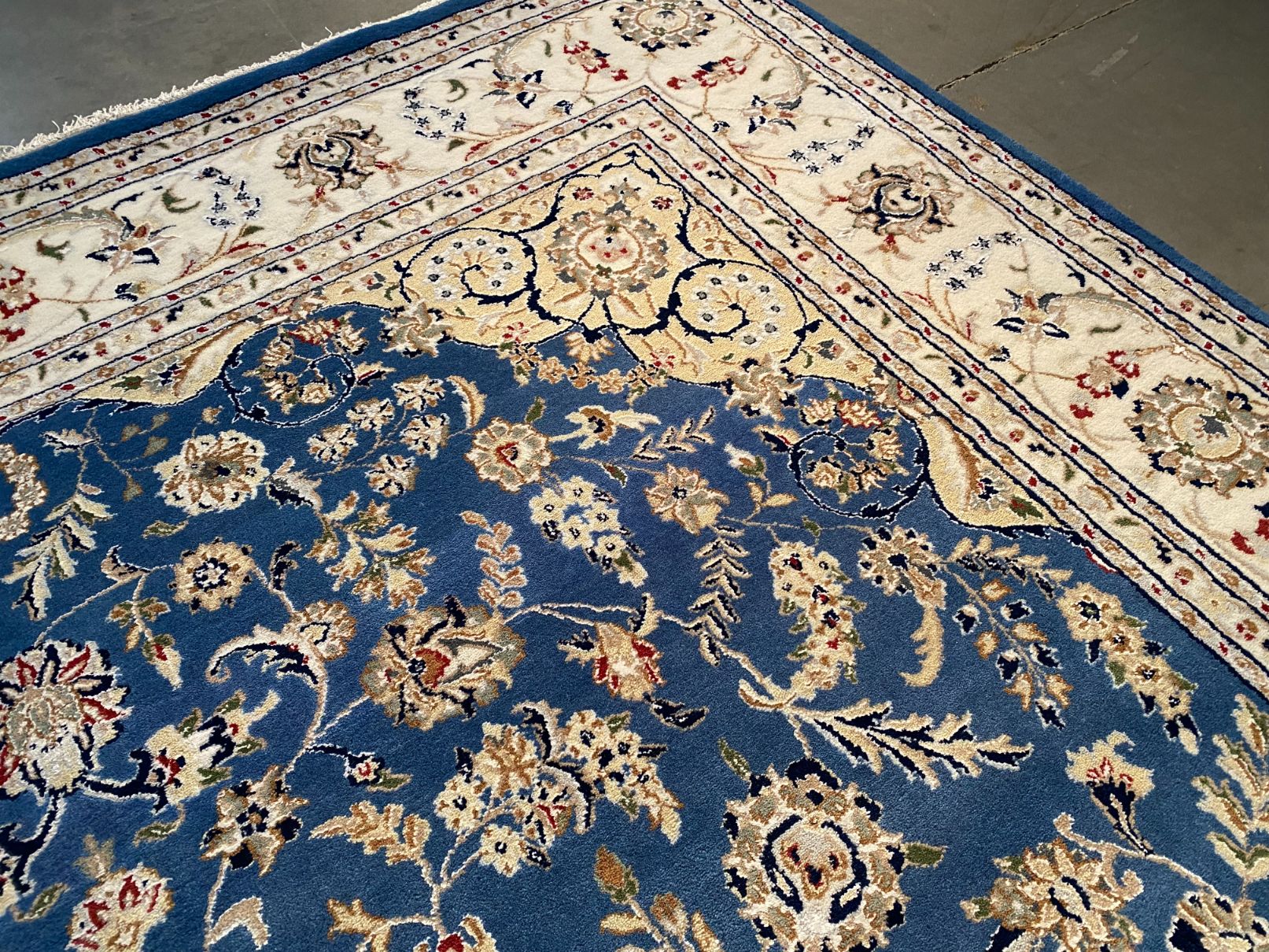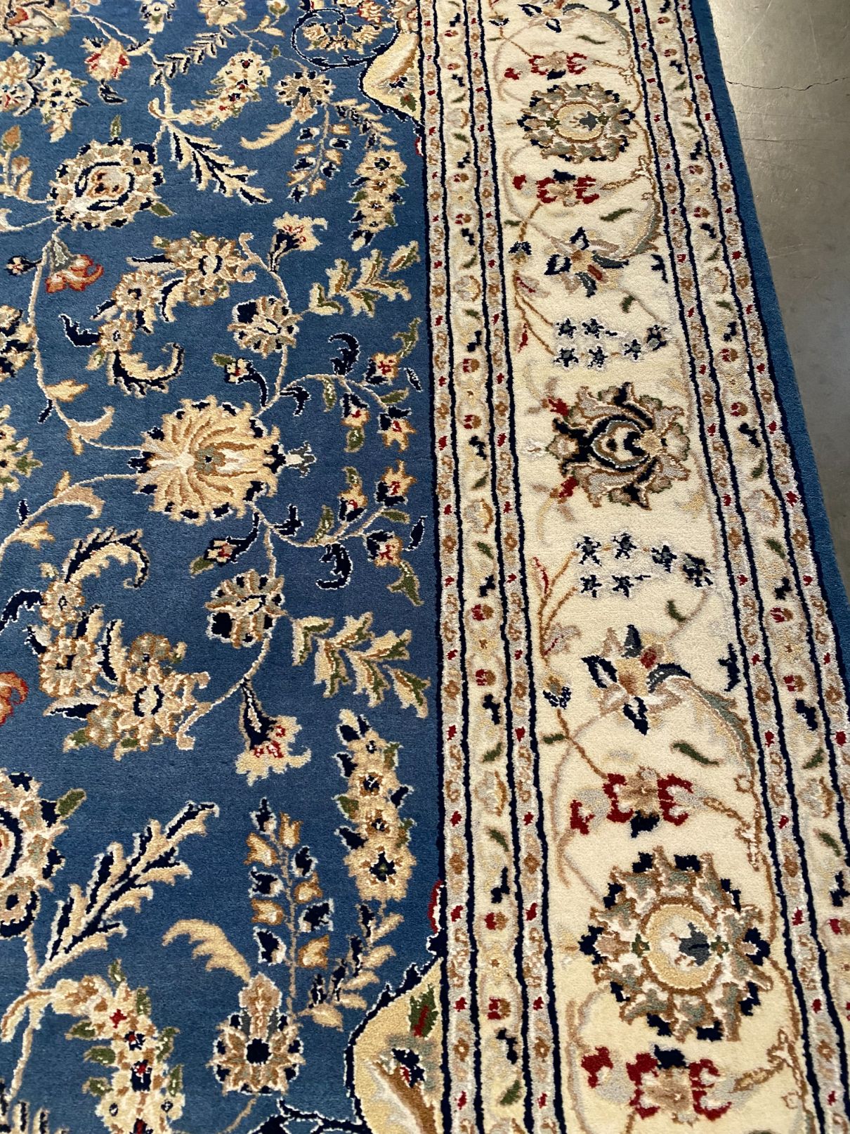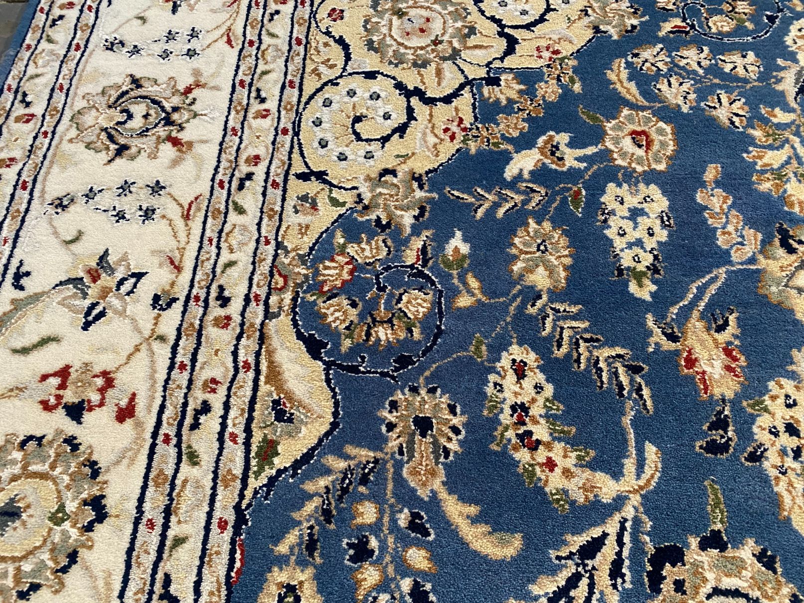 8x10.2 Persian Nain design silk and wool rug, in Royal blue, Ivory and multi accent colors, vege dye natural wool and silk high light pile,cotton foundation,hand knotted in India.
