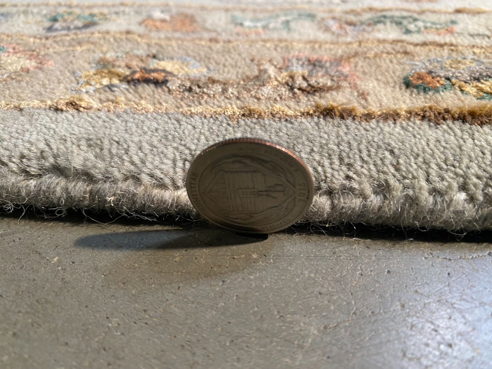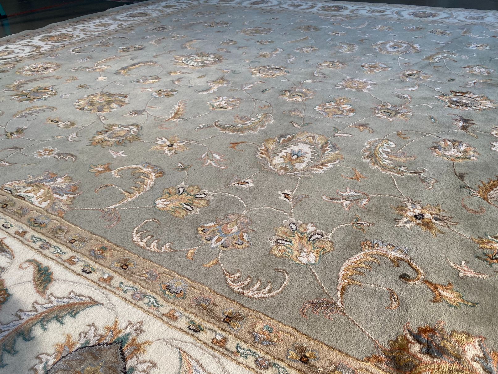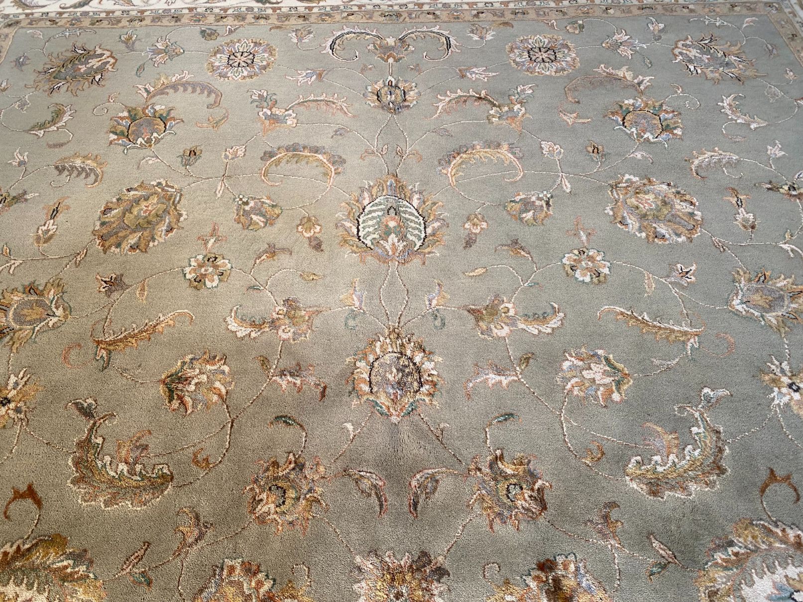 8x10.2 Persian allover Mahal design Silk and wool rug 80% wool pile and 20% silk flower highlights in Sage Green , Ivory and multi other accent colors Hand Knotted in India.