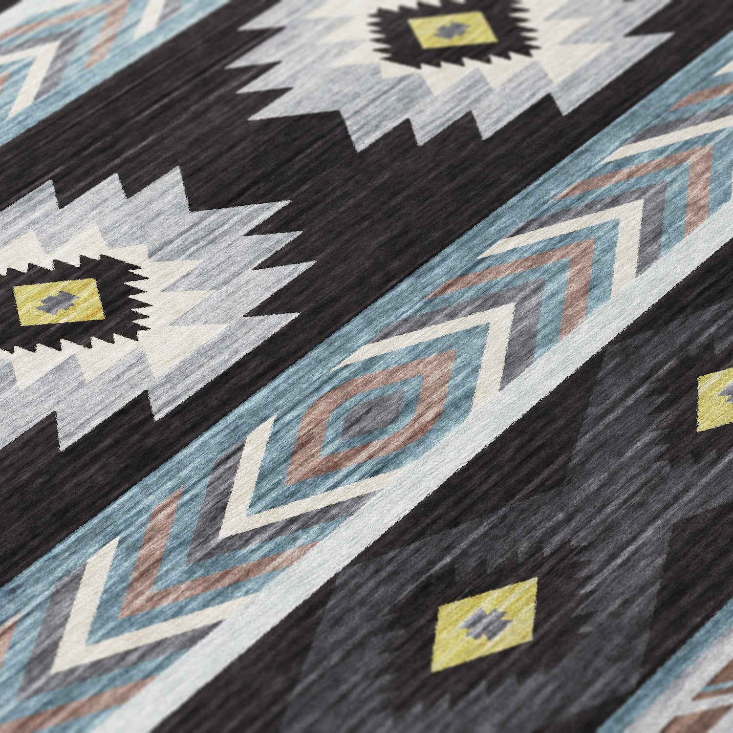 Phoenix collection has great casual southwestern lodge feel. Featuring an ultra-soft and ultra thin pile, each rug is made with 100% polyester pile complete with a non-skid backing. Crafted in the USA using Foreign & Domestic materials and US labor. They are UV Stabilized for indoor and cover outdoor spaces. .