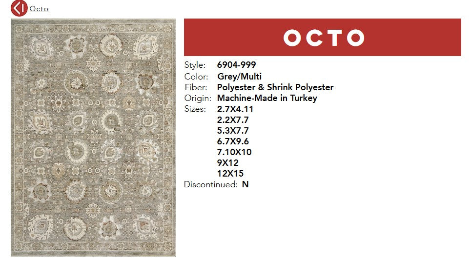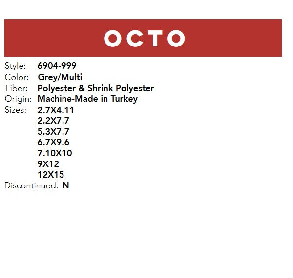The traditional, timeless styles of Octo coupled with cream and taupe tones make it a perfect choice to add long-lasting warmth to your motif. Machine-made in Turkey of polyester and shrink-polyester, Octo is not only shed-resistant, but durable, In Grey and Multi Color,  An ideal choice for high-traffic areas, suited to withstand the test of time.