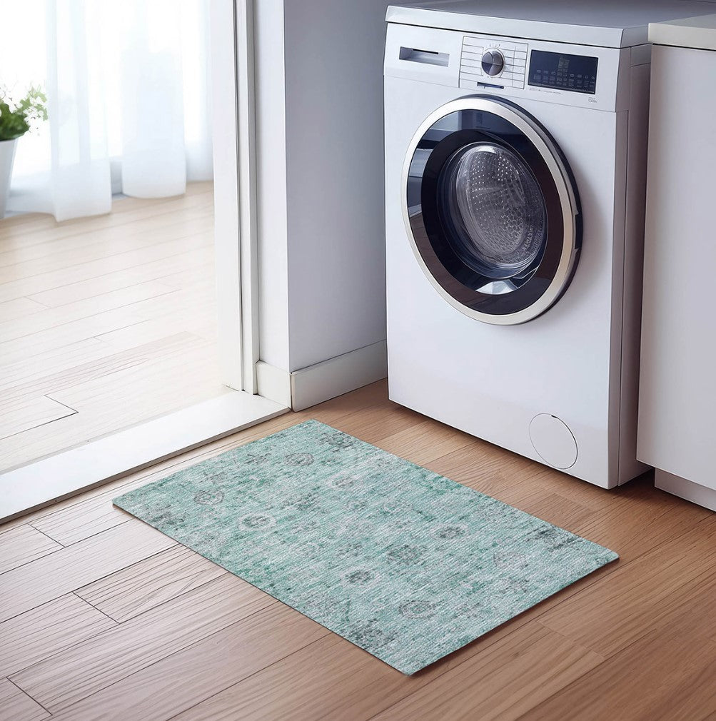 Solace Transitional Rug With Non-Skid Backing -Teal
