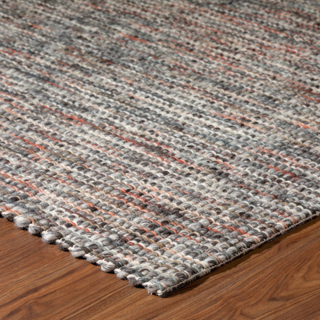 Bondi is a chunky "cobblestone" wool rug with undyed, tonal wool foundation with vertical, space dyed, accent yarns.