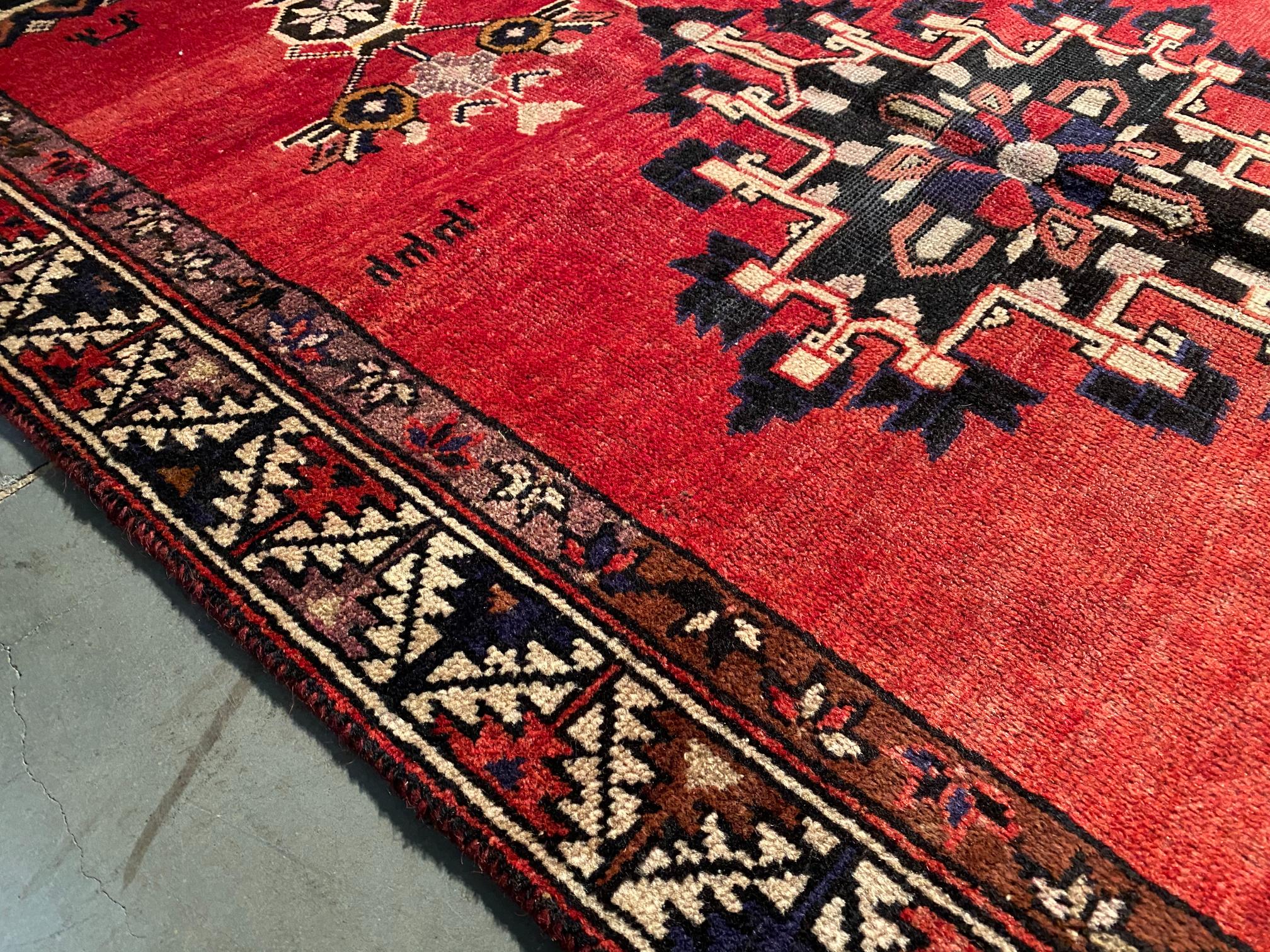 | 3'.7"x6'.6" Magnificent. Fine Antique Persian Hamedan wool rug, in rustic red, and multi other accent colors, vege dye natural wool ,cotton foundation,hand knotted in Iran |