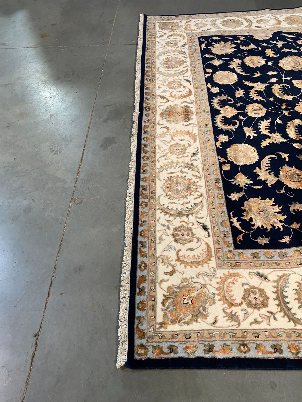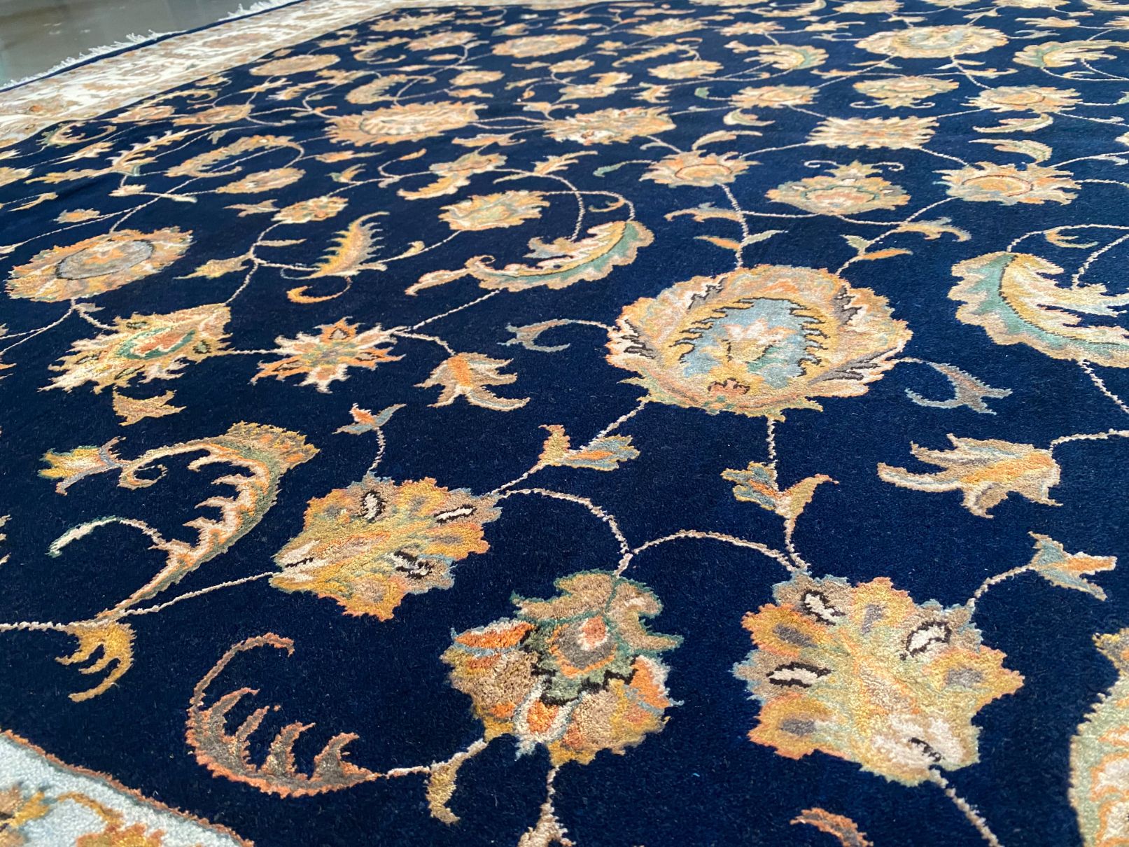 | 8x10 Stunning and Exquisite Persian allover Mahal design Silk and wool rug 80% wool pile and 20% silk flower highlights high luxerious sheen pile in Navy Blue, Ivory ,and multi other accent colors Hand Knotted in India |